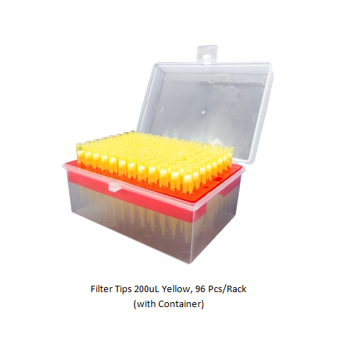 Filter Tips 200uL Yellow, 96 Pcs/Rack (with Container)